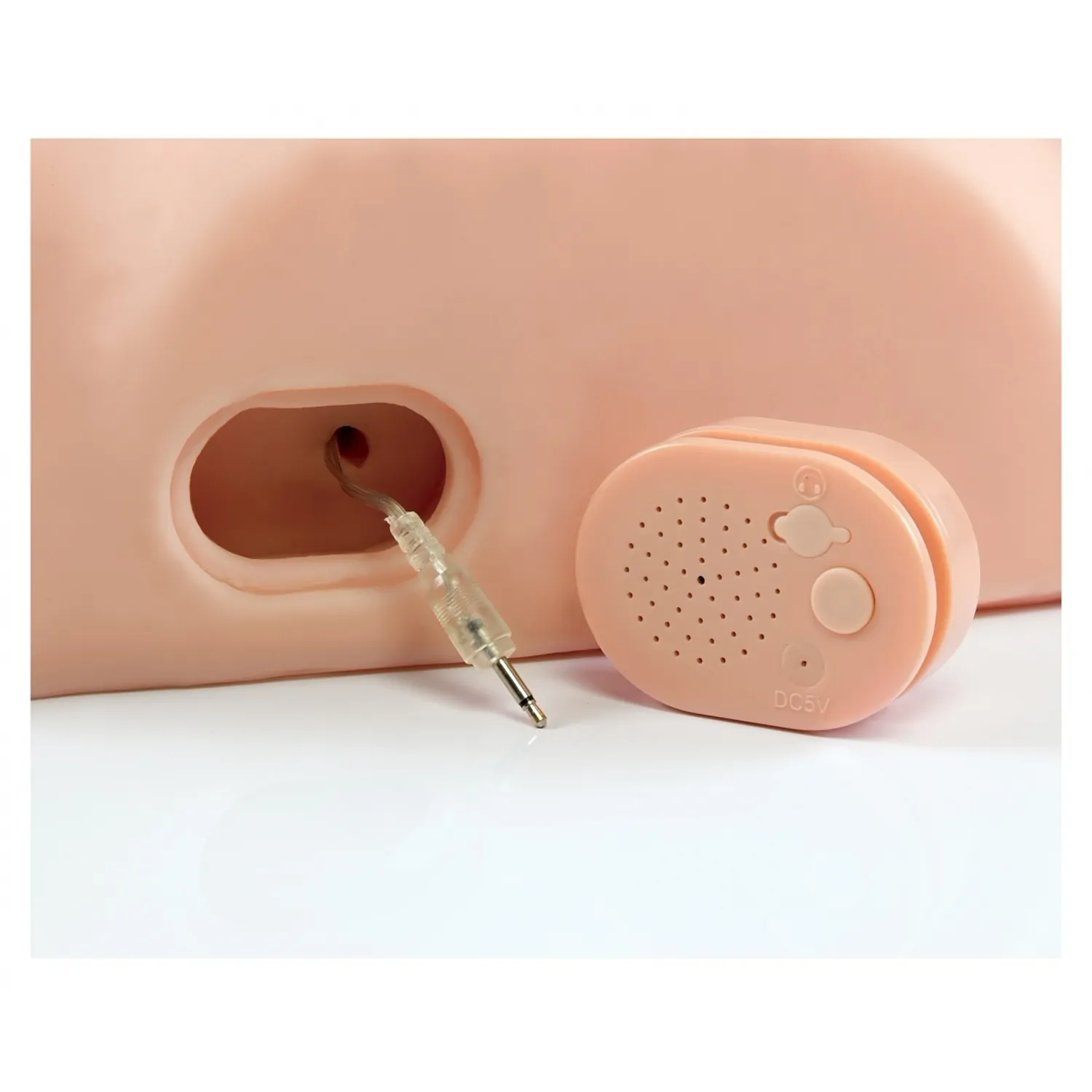 Beneficii şi atribute: - Material: TPE (Fanta Flesh) şi ABS, tactil şi realist - Formă anatomică, prindere flexibilă - Canal intern texturat cu puncte pentru stimulare continuă - Vibraţii interne sincronizate - Difuzor hi‑fi integrat cu 7 trepte de volum şi mufă aux pentru căşti - Modul audio detaşabil pentru curăţare uşoară - Reîncărcabil USB (acumulator Li‑ion) - Compatibil cu lubrifianţi pe bază de apă, sigur pentru corp - Mărimi relevante incluse pentru referinţă: lungime completă 17.8 cm, lungime inserabilă 15 cm, calibru 5 cm