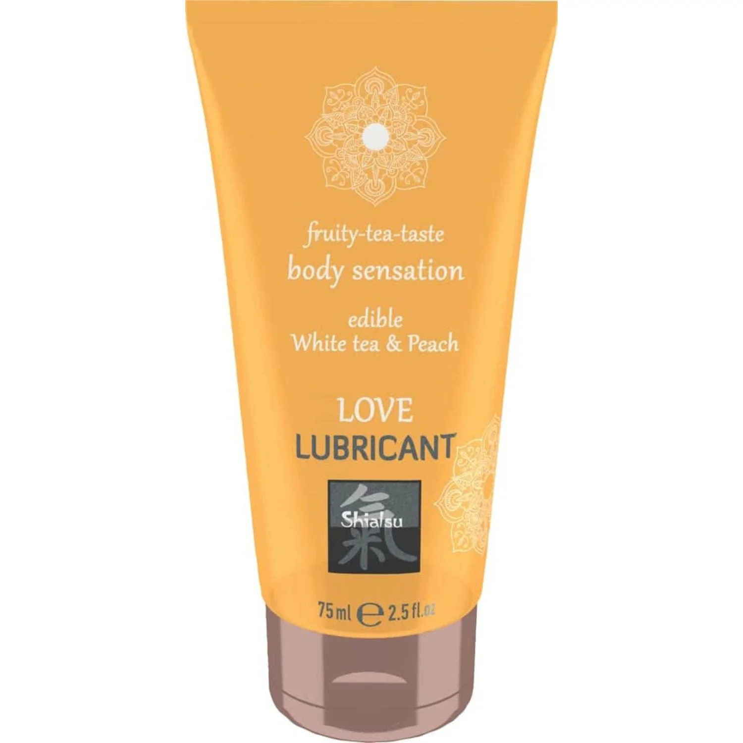 Lubrifiant pe bază de apă, comestibil, Shiatsu — aromă clară de ceai alb și piersică. Potrivit cu jucării sexuale și prezervative. Flacon compact 75 ml, se curăță ușor cu apă.