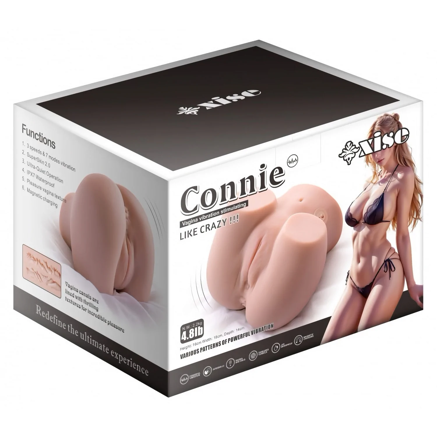 Greutatea stabilă (2,2 kg) asigură poziționare comodă în timpul utilizării. Produsul este trainic la apă, permițând îngrijirea cu apă călduță și detergent specializat; se propune curățarea cândva și după fiecare utilizare. Pentru confort maxim, folosiți agent lubrifiere pe bază de apă.