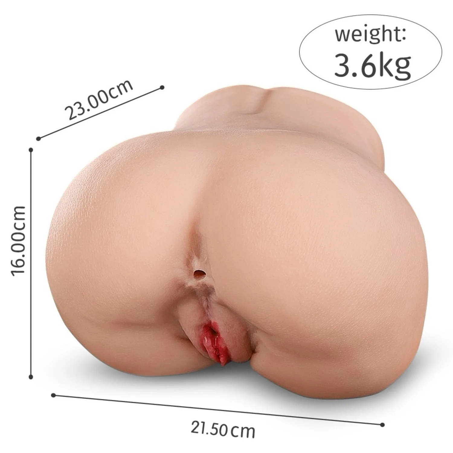 Deschiderile sunt modelate anatomic și finisate cu atenție la detaliu pentru emoții realiste. Greutatea de 3,6 kg conferă stabilitate, permițând utilizarea lipsit de alunecare sau deplasare nedorită.