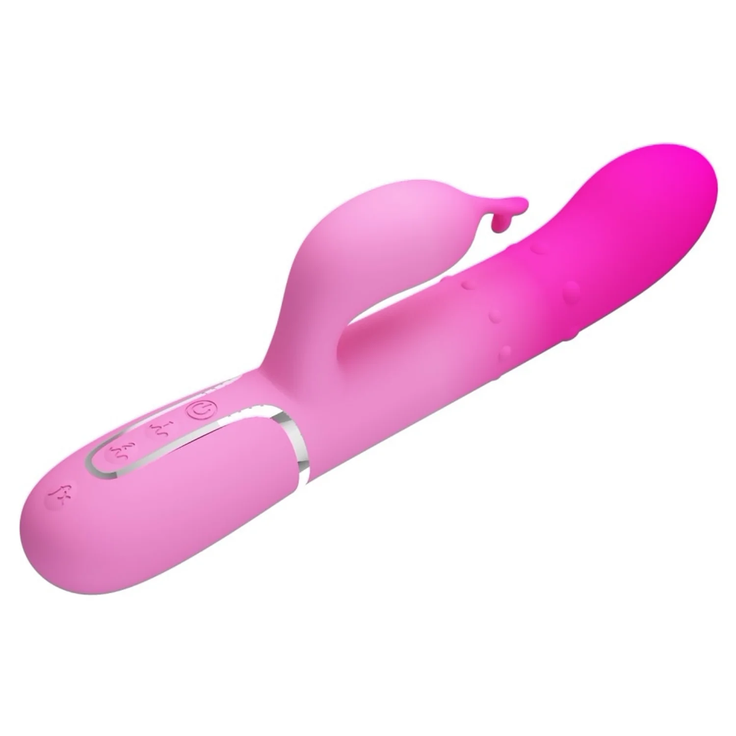 Vibrator rabbit Pretty Love Shima, reîncărcabil, cu 2 motoare independente, 7 feluri de vibrații, mărgele mobile şi stimulator clitoridian. Ergonomic, rezistent la apă şi uşor de curăţat.
