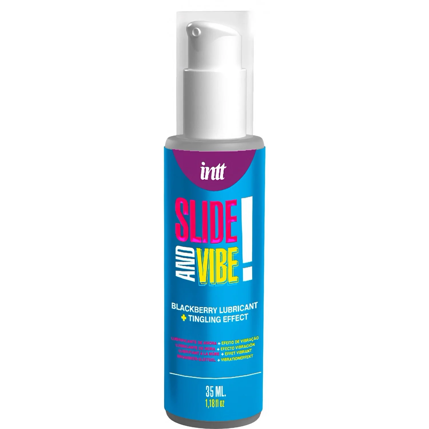 Intt Slide and Vibe, lubrifiant intim cu efect vibrant activat prin masaj. Textură fină, non-lipicioasă, aromă discretă de mure. Aplicare ușoară; poate fi reaplicat după nevoie. 35 ml.