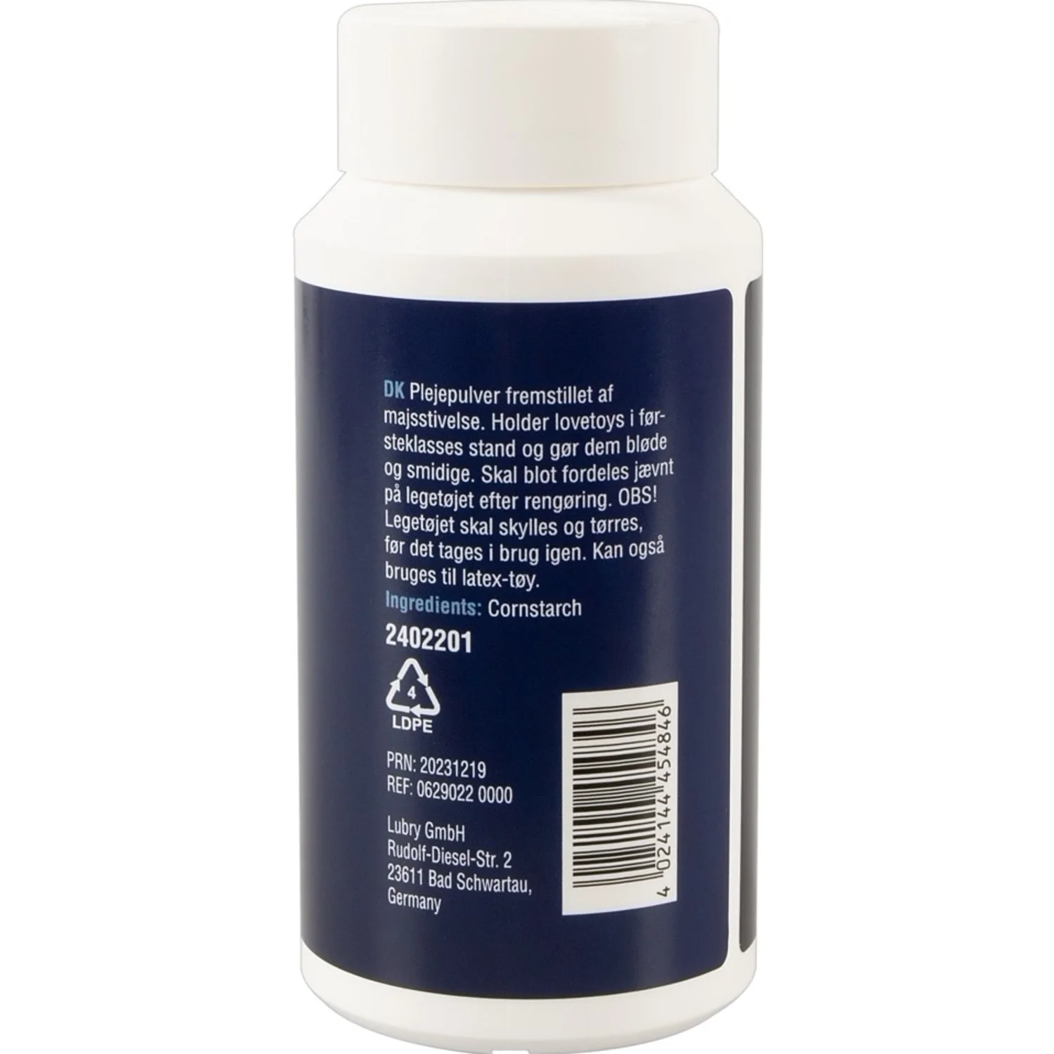 Pudră ușoară din amidon de porumb pentru îngrijirea jucăriilor intime. împiedică uscarea și rigidizarea materialelor sensibile, readuce senzația de catifelare. Ambalaj practic de 120 g, aplicare simplă.
