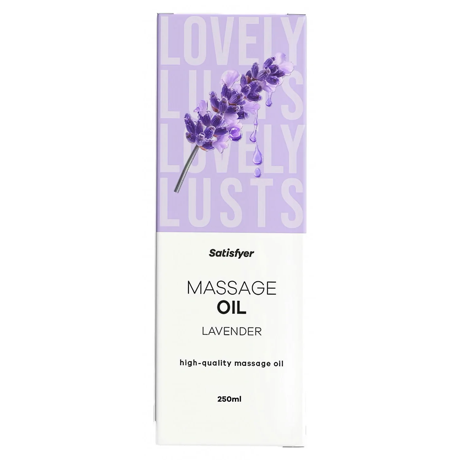 Ulei de frecție Satisfyer cu aromă delicată de lavandă, 250 ml. Textură mătăsoasă, alunecă ușor, se absoarbe lent și lasă dermă catifelată, scutit de senzație grasă. Corect pentru masaje relaxante în doi.