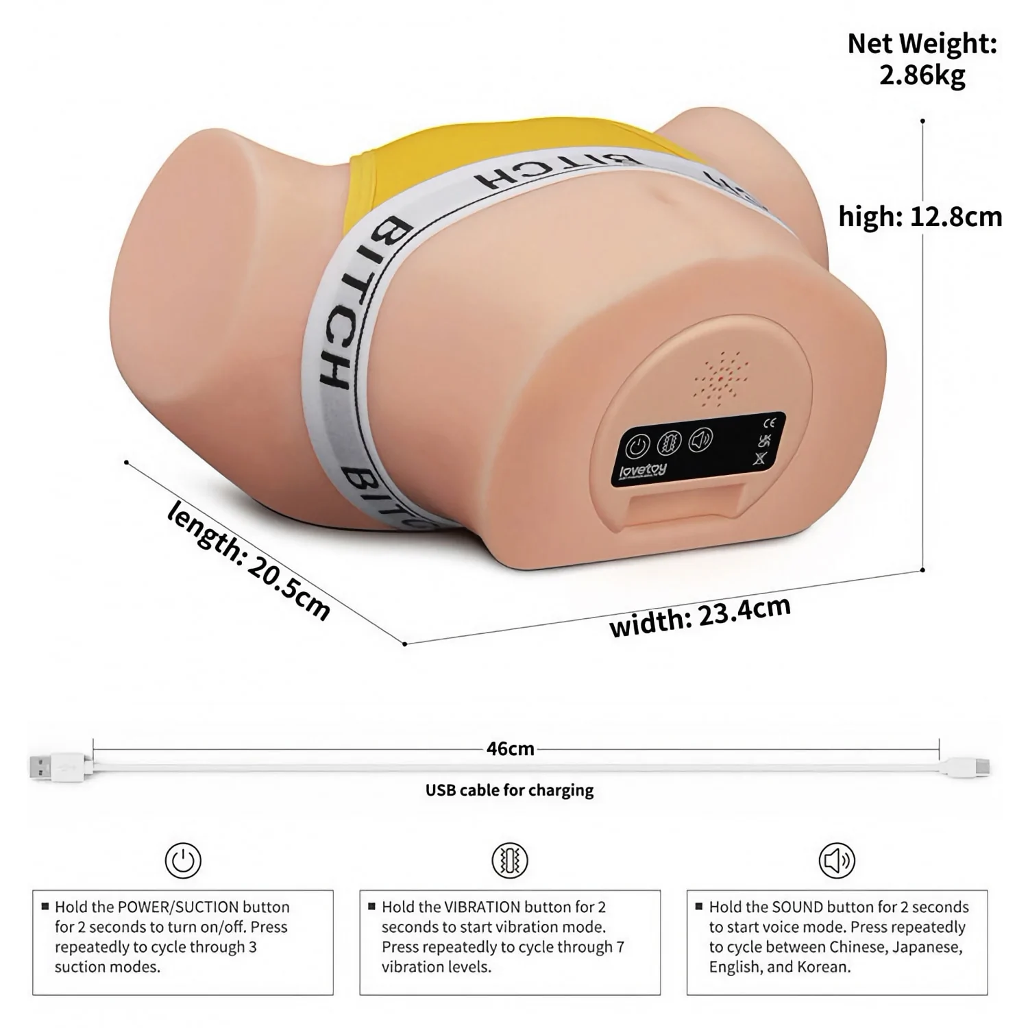 Carcasa este concepută din ABS solid, iar interiorul din TPE flexibil reproduce texturi realiste și se detașează pentru curățare facilă. Scoateți unitatea de aspirație cândva de a curăța canalul; clătiți cu apă curentă și lăsați la uscat înainte de asamblare.