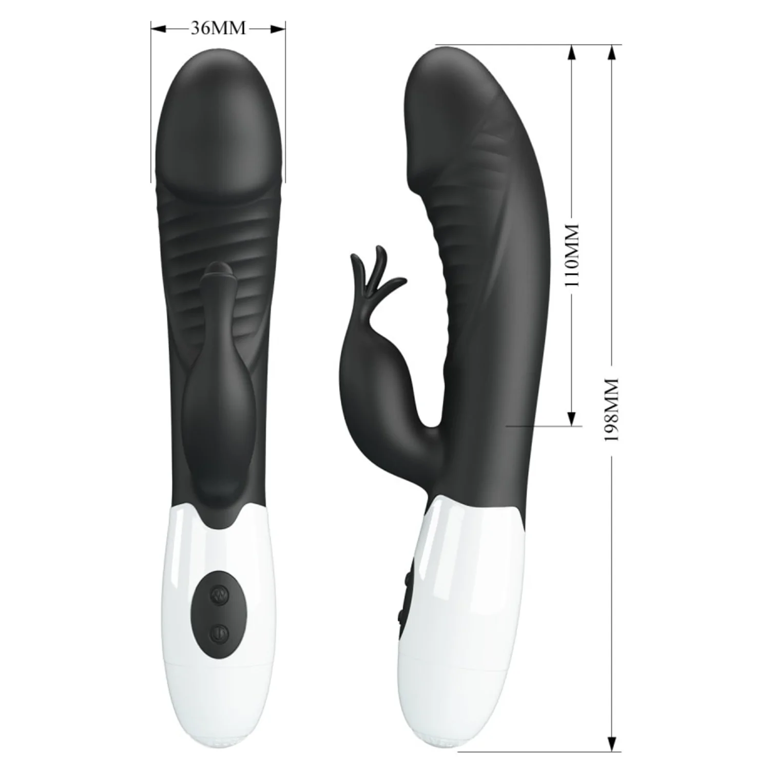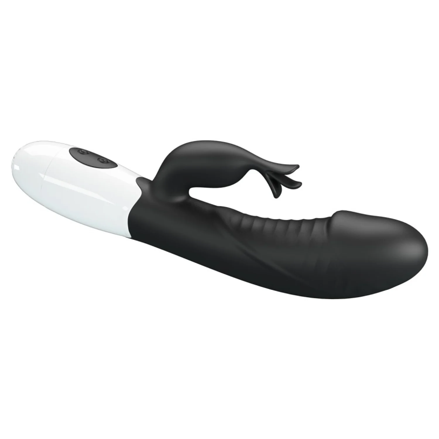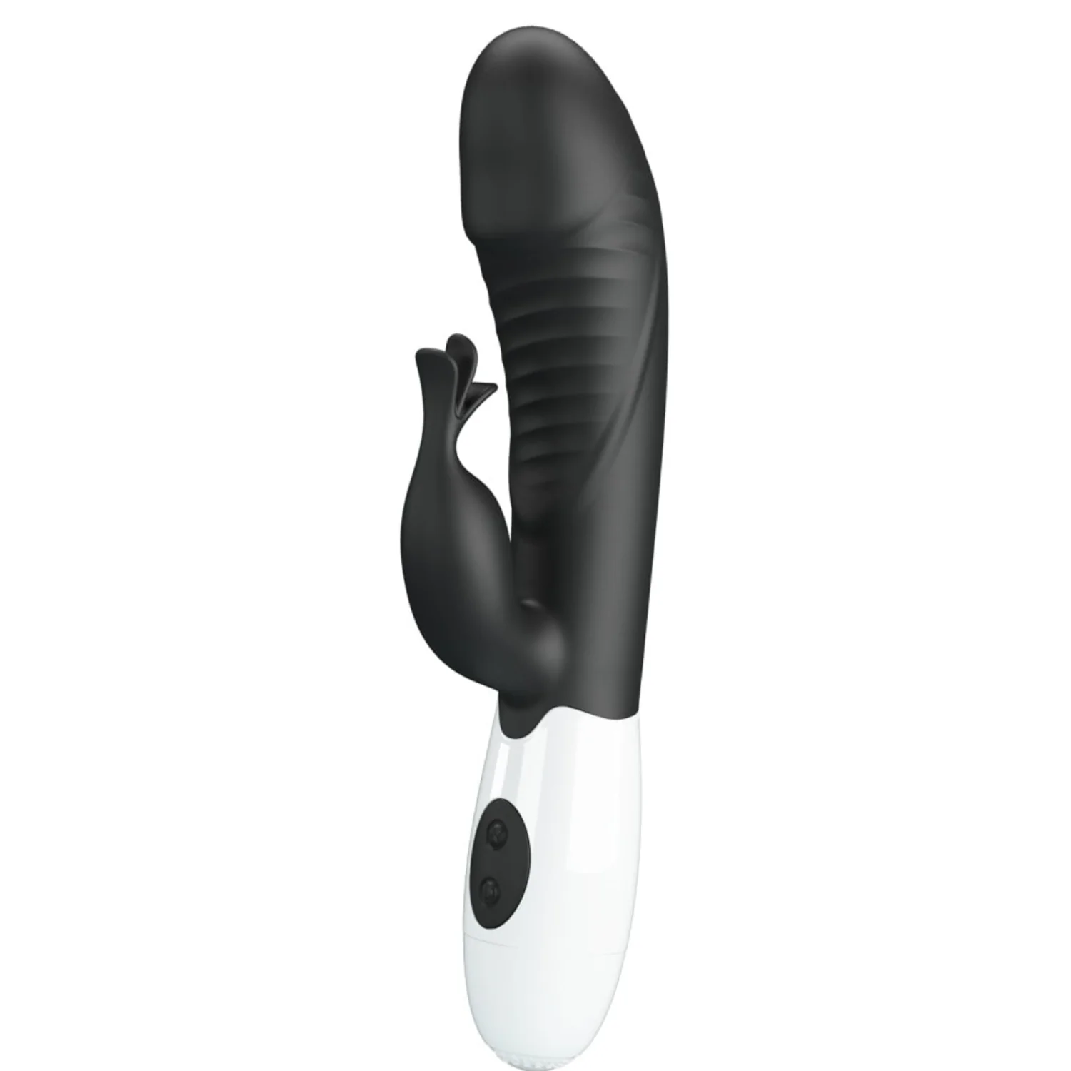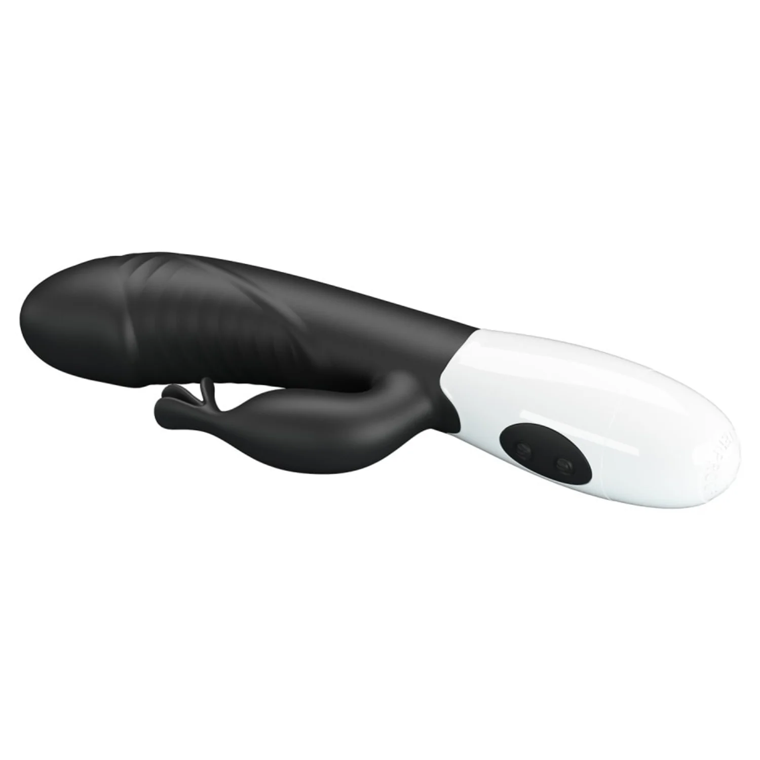 Stimulator dublu Pretty Love Rasmussen: braț flexibil ce menține contactul cu clitorisul și cap pentru punctul G. 30 moduri de vibrație, controale intuitive, alimentare cu 2 baterii AAA pentru exploatare discretă.