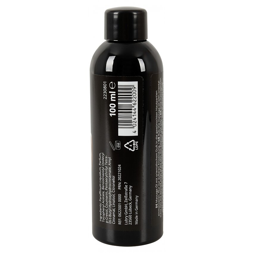 Aroma de miresme orientale va trezi toate simțurile și va stârni poftele ascunse. Răsfață-ți partenerul cu un masaj senzual făcut cu acest ulei afrodisiac ce alunecă ușor pe piele și are un grad ridicat de lubrifiere. Fiind solubil în apă, se curăță ușor și nu pătează. Parfumul său persistă o perioadă lungă de timp.