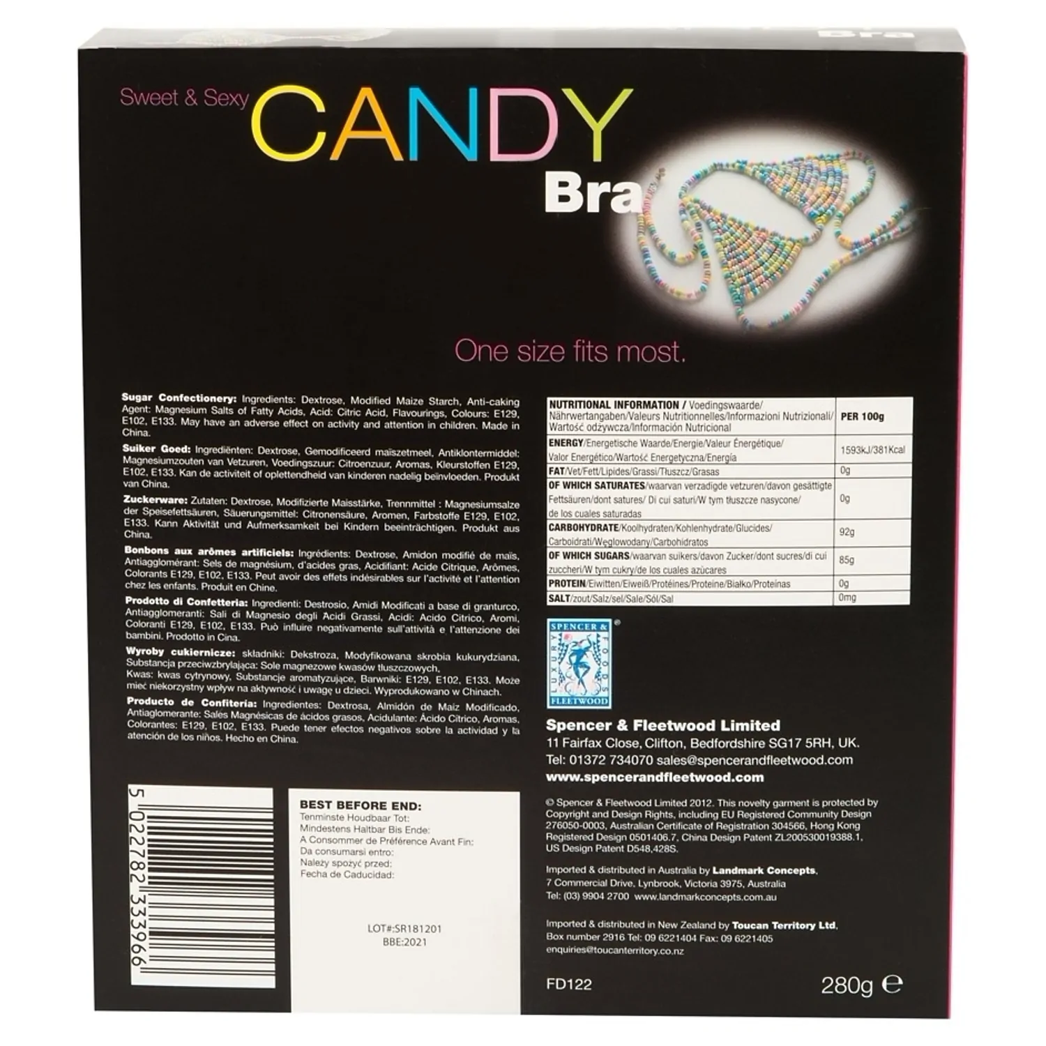 Acest sutien fabulos este realizat din sute de bombonele cu arome fructate, întocmai la fel ca și colierele și brățările din bombonele pe care le cumperi de la magazinul de dulciuri.O distracție perfectă și un gust excepțional de fructe - poartă-l și lasă-ți iubitul să îl mănânce.