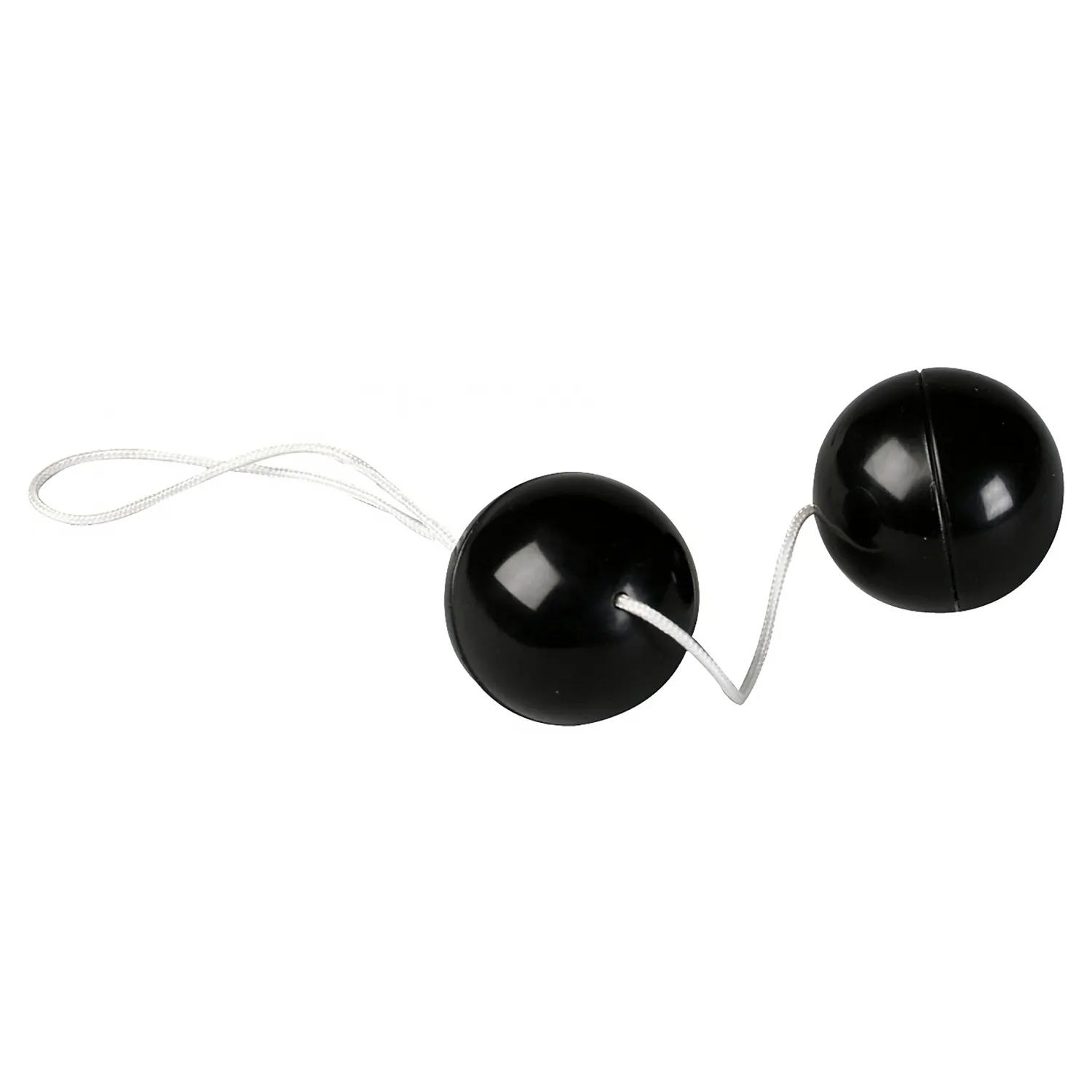 Bile genitale negre, clasice, pentru exersarea mușchilor pelvieni și îmbunătățirea vieții sexuale. Biluțele sunt realizate din PVC moale și sunt dispuse pe un șnur ce ajută la extragerea ușoară din vagin. În partea interioară conțin alte bile mai mici, ce produc vibrații la fiecare mișcare. Antrenează-te cât mai des cu aceste bile și îți vei uimi partenerul cu noul tău vagin tonifiat!