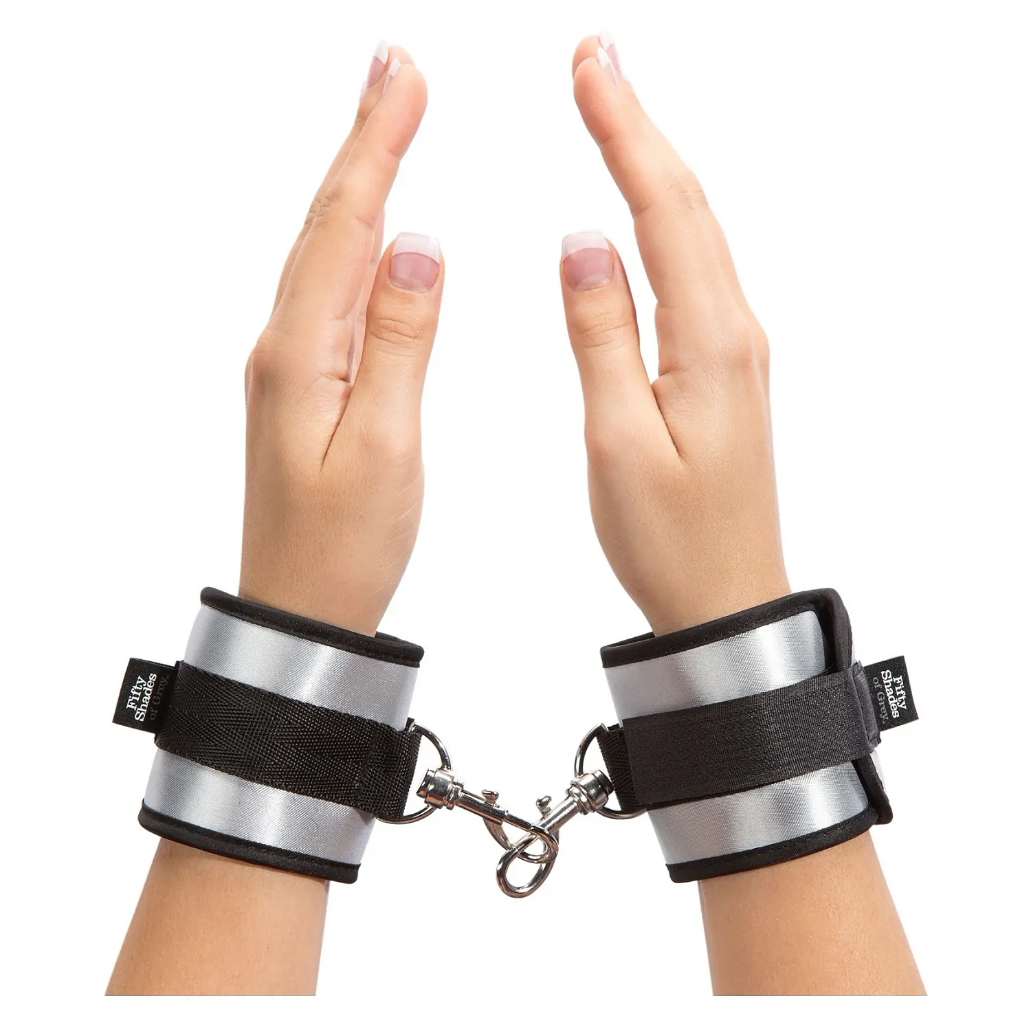 Cătușe puternice și sigure, căptușite cu material catifelat, iar pe exterior sunt din satin. Pe manșete pot fi legate și alte articole. Include sac de depozitare satin.