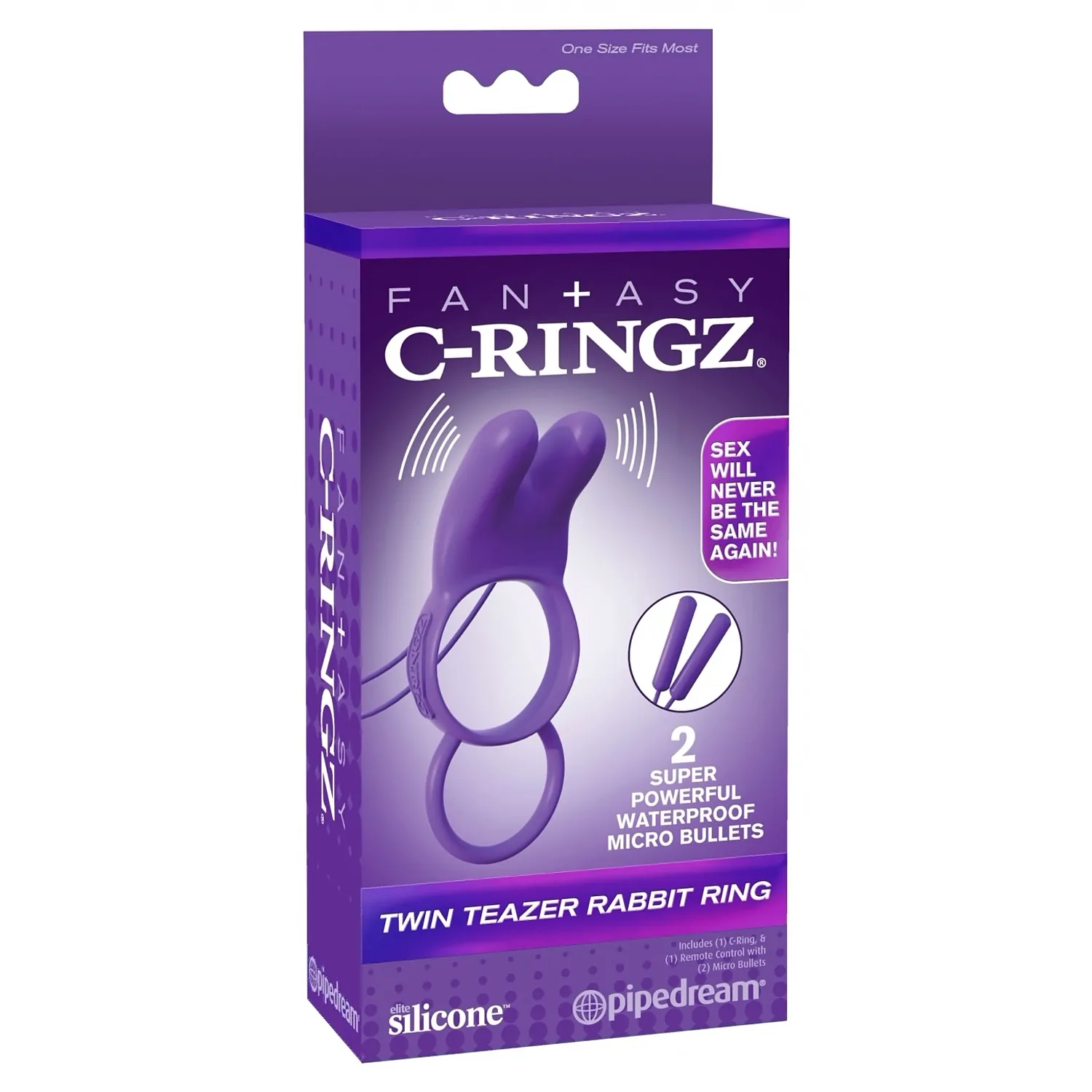 Urechile vibrante, textură mătăsoasă și cele 5 moduri de vibrare ajustabile cu ajutorul telecomenzii cu fir, fac din inelul pentru erecție Fantezie C-Ringz Twin Teazer Rabbit o jucărie sexuală fantastică pentru cupluri.
