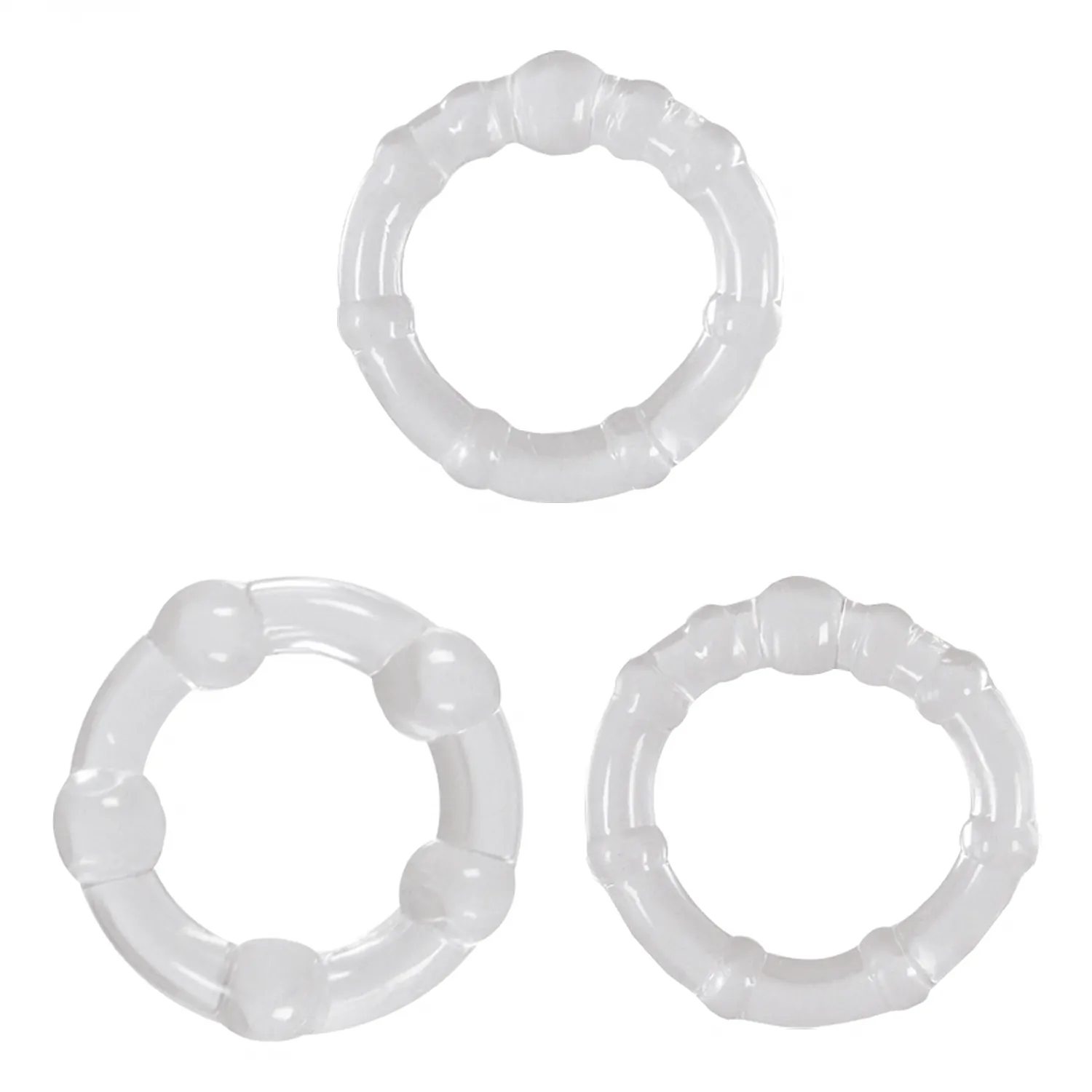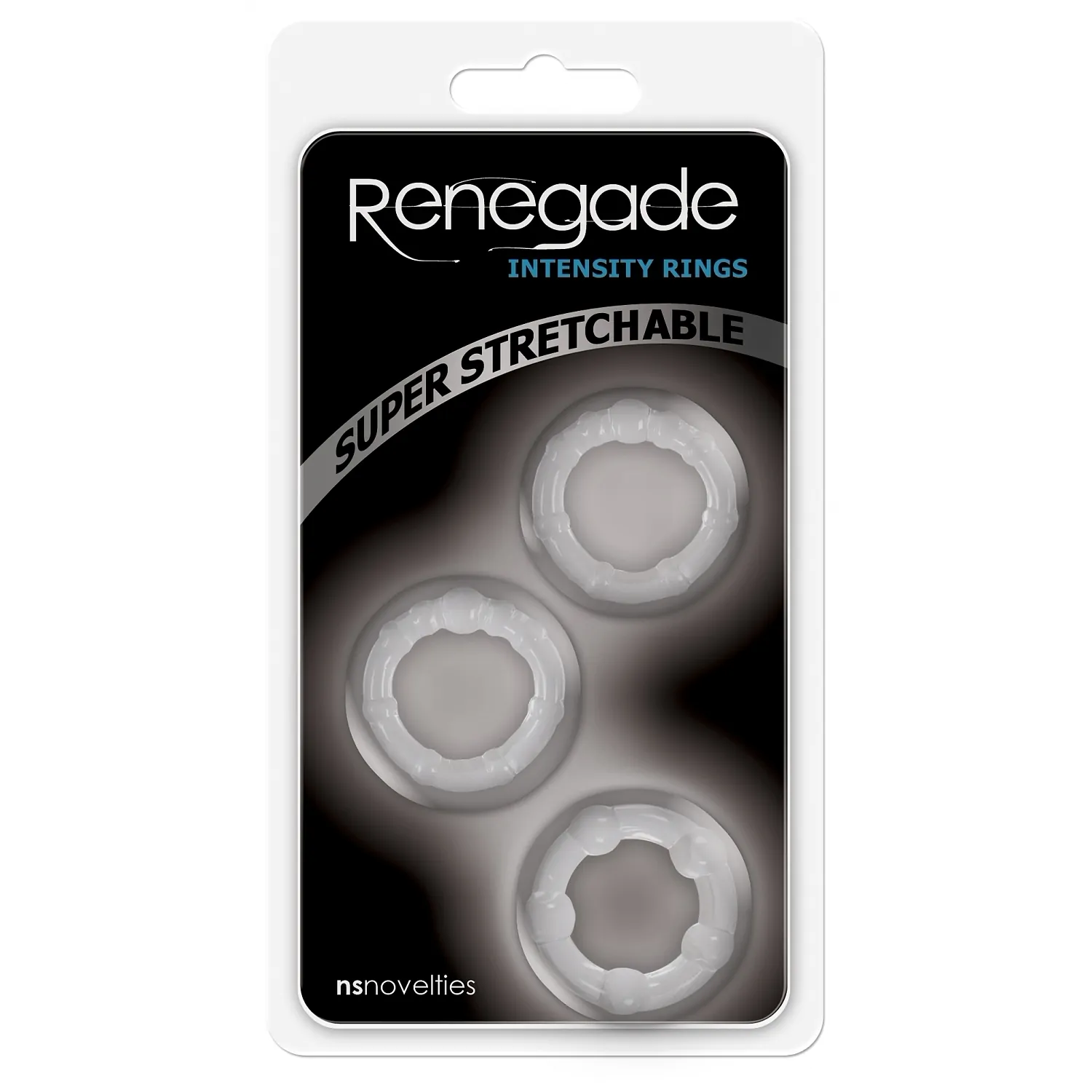 Descoperă eficacitatea Setului de Inele Renegade Intensity Transparent! Alcătuit din 3 inele flexibile și variate, acest set perfecționează erecția, prelungește delectarea și crește stimularea celor doi parteneri. Durabile și lipsit de ftalați, inelele pot fi folosite în numeroase combinații unice.