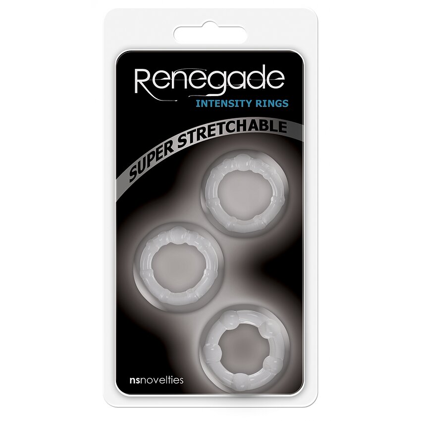 Descoperă puterea Setului de Inele Renegade Intensity Transparent! Alcătuit din 3 inele flexibile și variate, acest set îmbunătățește erecția, prelungește plăcerea și intensifică stimularea ambilor parteneri. Durabile și fără ftalați, inelele pot fi folosite în multe combinații unice.