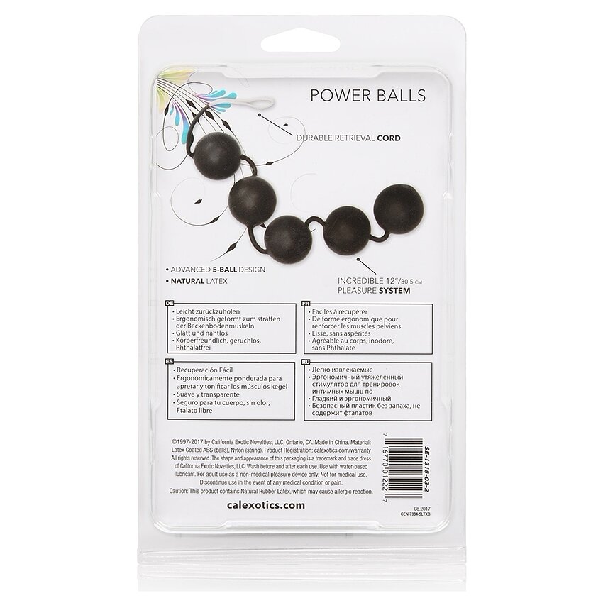 Adaugă bilele anale Power la jocurile erotice pentru senzații în plus. Bilele sunt prinse între ele cu un șnur din nailon acoperit cu cauciuc pentru curățare ușoară și au un mâner pentru control facil. Dimensiunile destul de mari ale celor 5 bile sunt cel mai potrivite pentru un utilizator experimentat. Bilele unt realizate din material neporos, fără ftalați, fin și ușor de curățat.