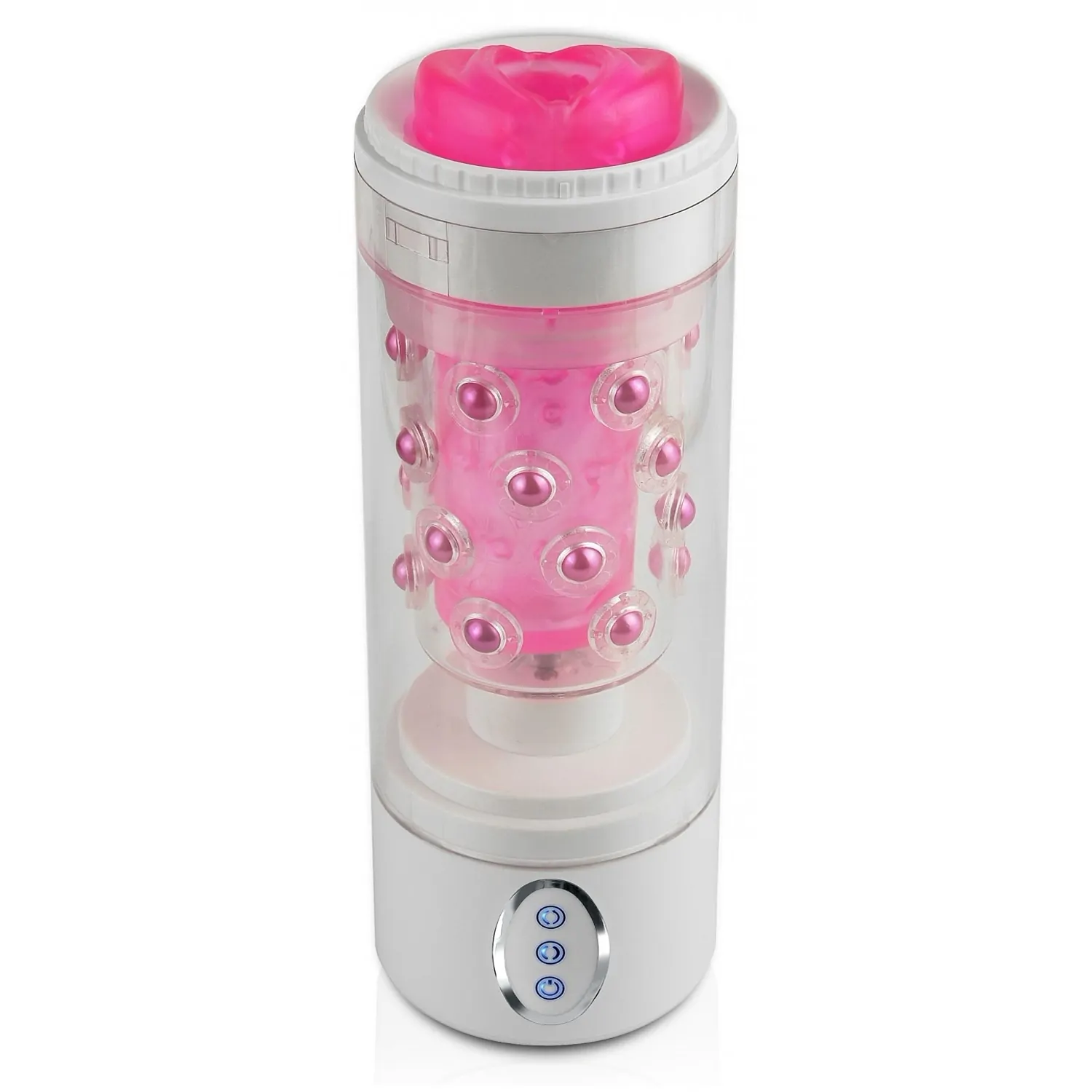 Este automat, nu mai trebuie să pompați - apăsați doar un buton și masturbatorul își face treaba.Manșonul partea interioară este fin din material TPR(sigur pentru corp) și prevăzut cu noduli pentru emoții sporite. Manșonul exterior este însușit cu bile și oferă vibrații de rotații irezistibile.