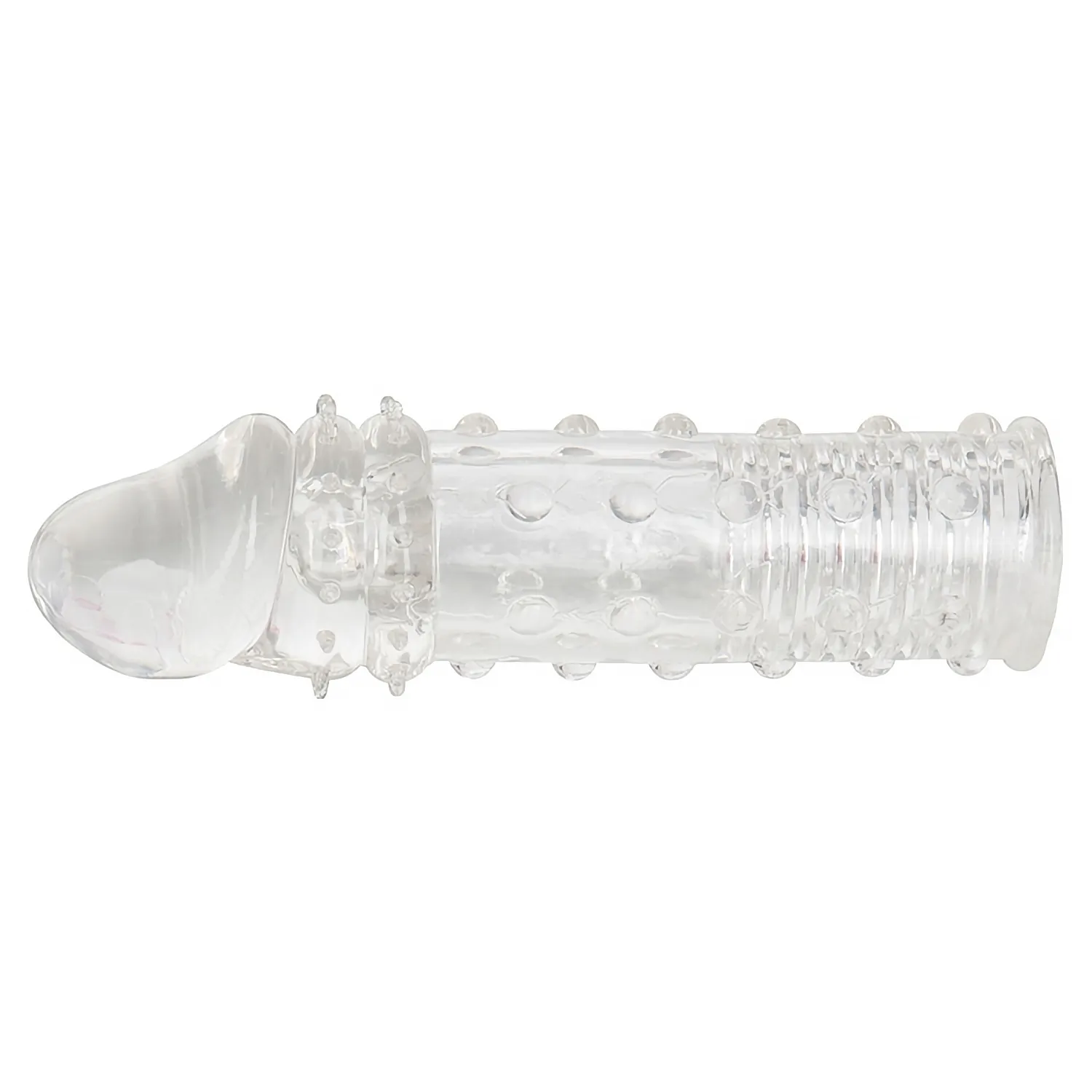 Apollo Extender Clear furnizează prolongația penisului și a erecției. Suprafața sa texturizată cu mici proeminențe oferă o extra stimulare partenerei.