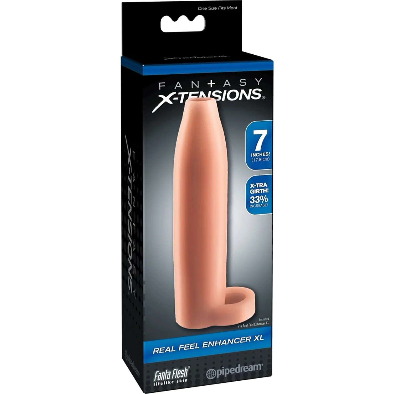 Este grozav și pentru masculii cu probleme erectile. Manșonul Membru Fantasy XTensions Real Feel XL este concretizat dintr-un material Fanta Flesh, ce se simte ca o a doua piele, chiar mai bine. Super flexibil pentru a se ajusta pe absolut orice dimensiune, manșonul are la bază un inel, unic plămădit pentru a menține erecția o durată lungă de timp, chiar și pentru fixarea sa.