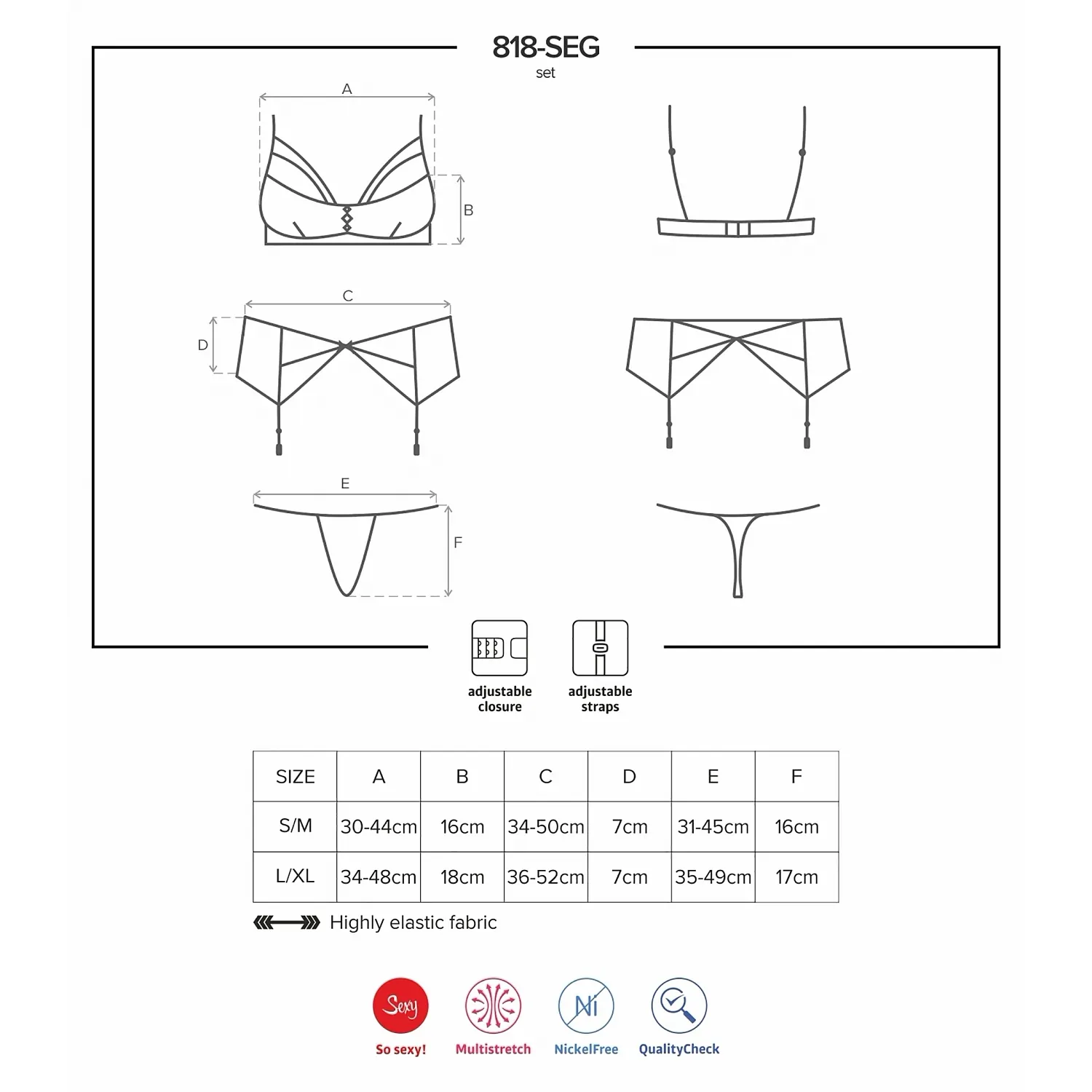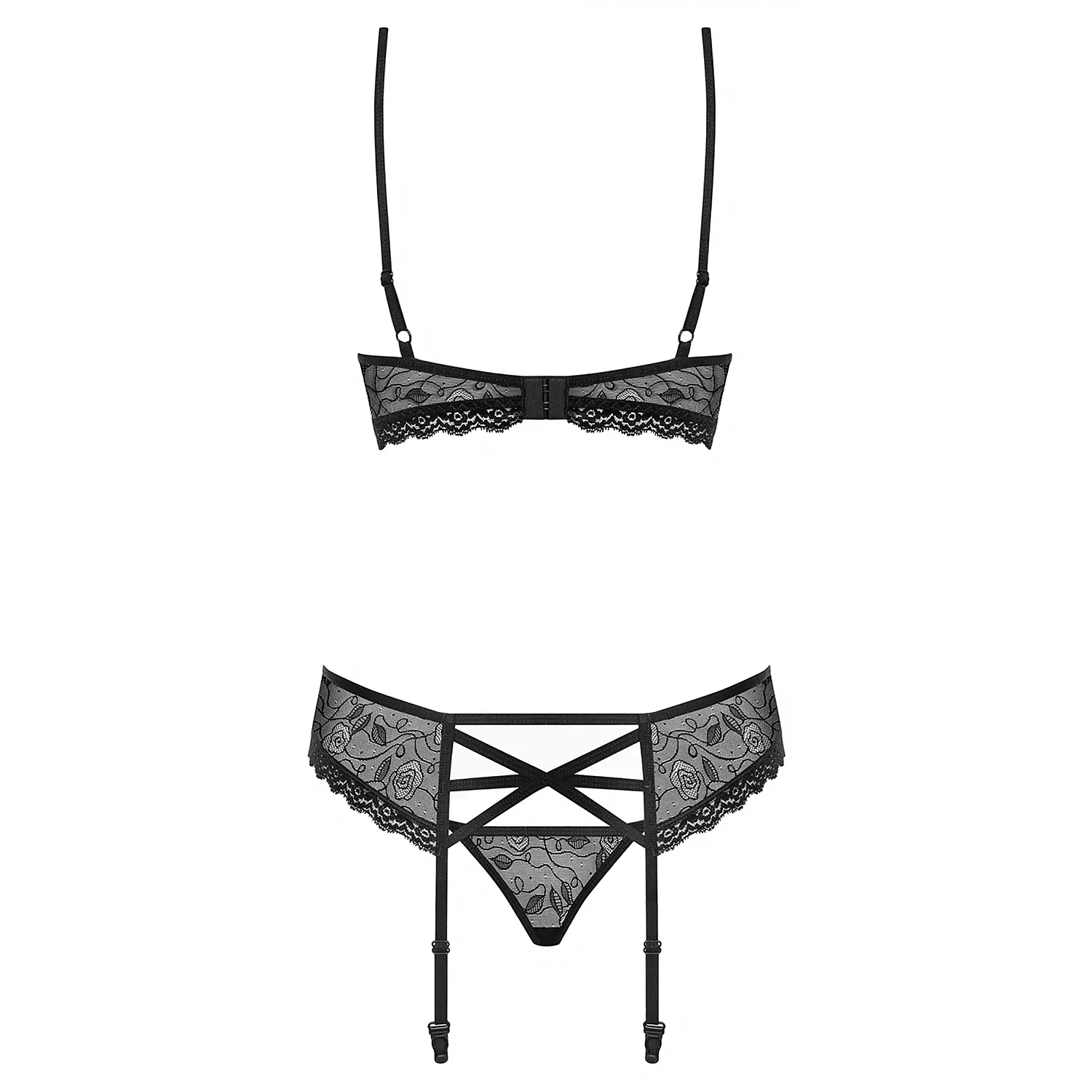 Alege acest set lenjerie sexuală ce iese din tipare! Toate piesele sunt confecționate din dantelă elastică, ornată cu elemente florale. Sutienul este împodobit cu benzi elastice deasupra bustului, închizându-se la spate cu ajutorul unui sistem moș-baba. Portjartierul are benzile reglabile, pentru o ajustare perfectă! Panty-ul asortat inclus și accesoriile inserate completează absolut setul. Set Lenjerie Intimă Obsessive 818-SEG închis la culoare este creat dintr-o țesătura elastică.