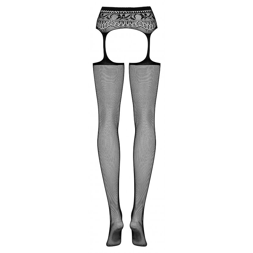 Nu mai stă pe gânduri! Detalii incitante: combinație perfectă de ciorapi și portjartier, decorată cu flori, elastică și confortabilă, croială perfectă, deschisă între picioare, țesătura moale și flexibilă. Dresuri Obsessive S307 Negru este realizat dintr-o țesătura cu elasticitate.
