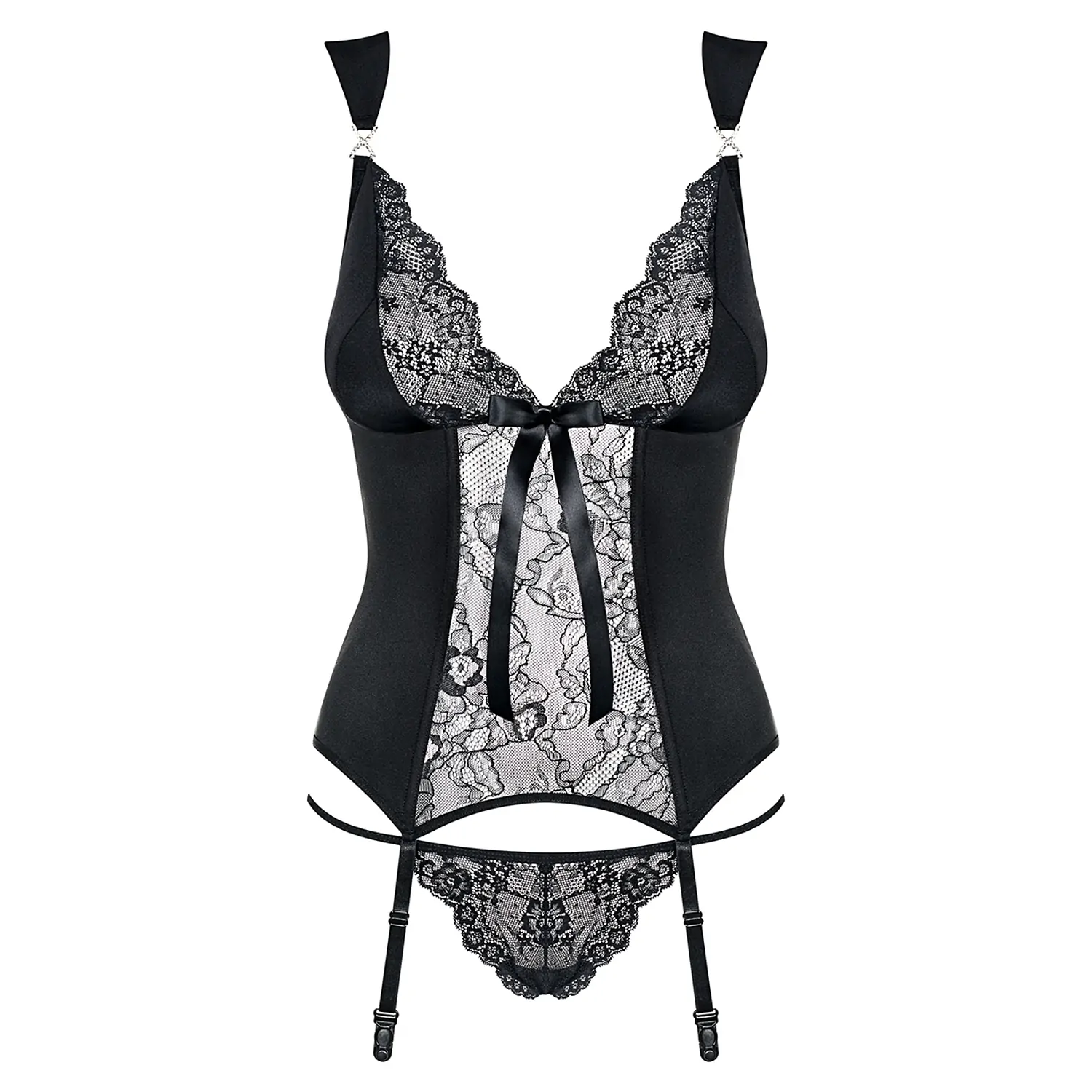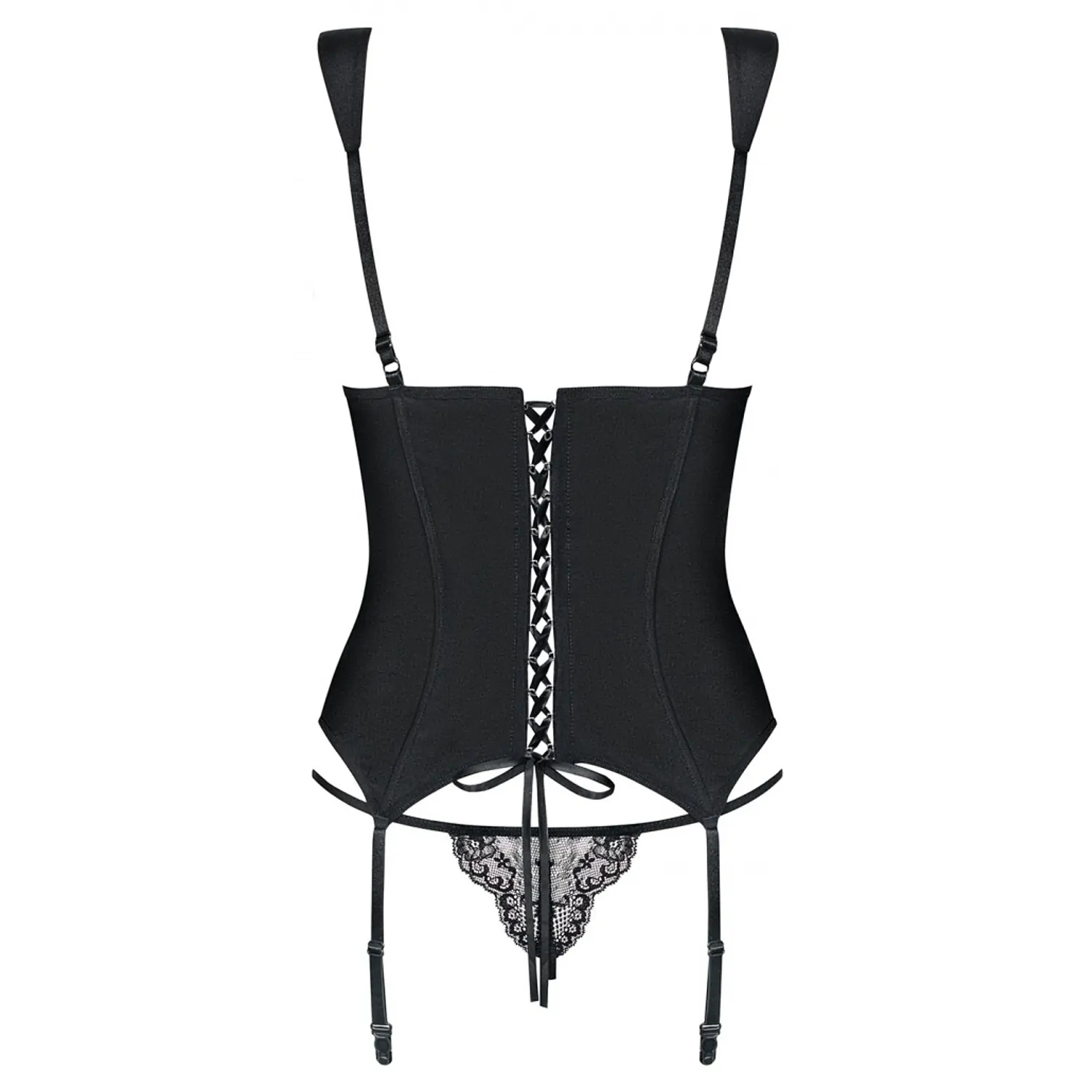 Corset Obsessive Charmea închis la culoare este un obiect de lenjerie neașteptată și fantastic de savuroasă, inventată și realizată de valorosul brand de lenjerie Obsessive din Polonia.