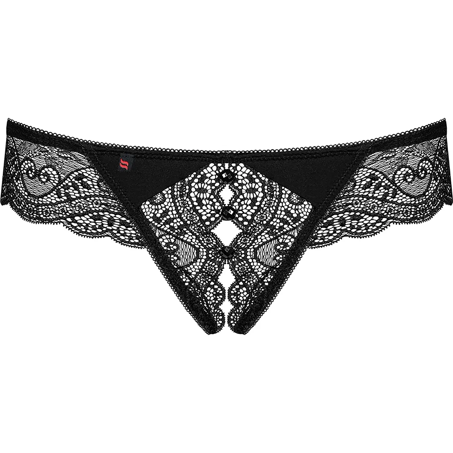 - Chilotul Bikini cu ață Miamor are un stil erotic cu deschidere în zona dintre picioare și a feselor, perfect pentru aventuri senzuale.